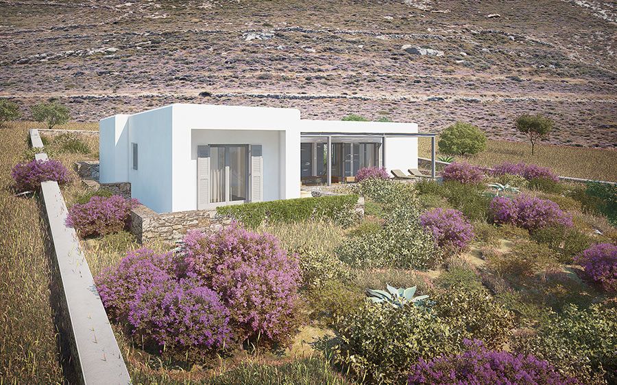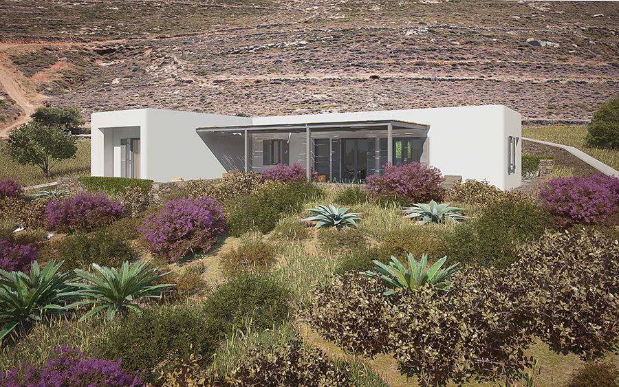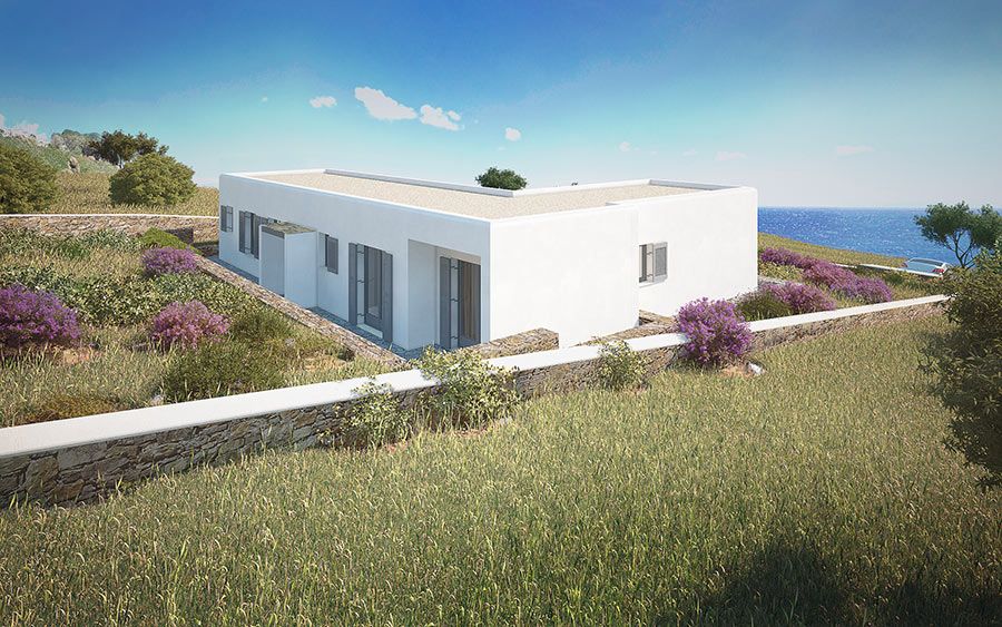 Η κατοικία βρίσκεται σε ένα οικόπεδο συνολικής επιφανείας 1.164,18 τ.μ. και αναπτύσσεται σε έναν όροφο με επιφάνεια 91,40 τ.μ.. Η κατοικία σχεδιάστηκε με γνώμονα τις ανάγκες της πενταμελούς οικογένειας που θα χρησιμοποιήσει την παραθεριστική κατοικία. Ο βασικός άξονας του σχεδιασμού είναι η δημιουργία δύο ενιαίων όγκων τύπου «Γ», οι οποίοι βρίσκονται στο ίδιο επίπεδο. Η μορφολογία της κατοικίας αντιπροσωπεύει τη σύγχρονη αρχιτεκτονική προσαρμοσμένη στις αναλογίες και στα υλικά της παραδοσιακής κυκλαδίτικης αρχιτεκτονικής.